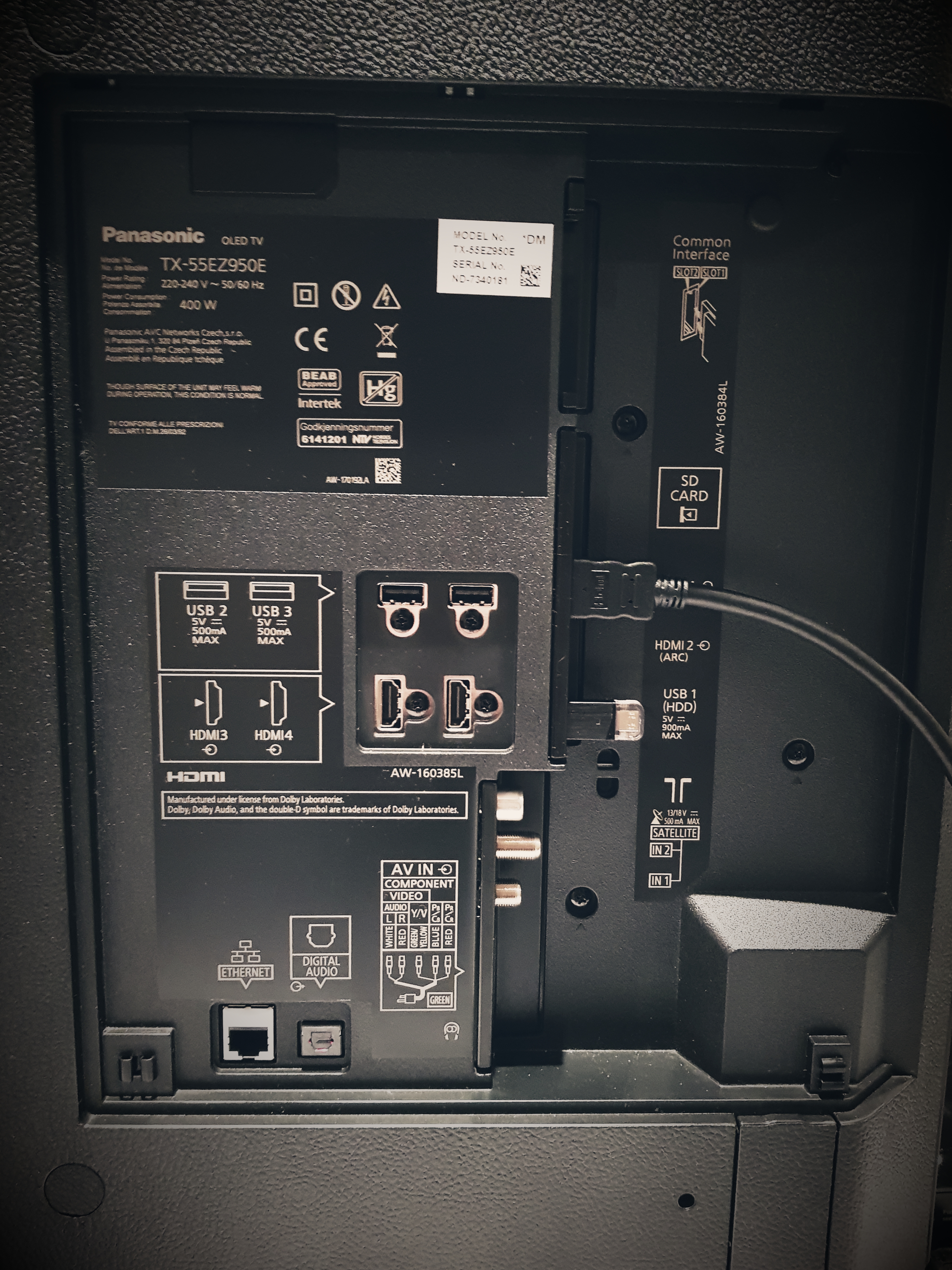 Természetesen első dolgom volt alaposan körbejárni a készüléket, még mielőtt bármilyen funkcióba, vagy részletbe belemennék. Első utam a TV hátuljához vezetett, egyből le kellett csekkolnom, mégis milyen csatlakoztatási lehetőségeket lehet itt találni. Igazából, talán ez az egyetlen átlagosnak mondható része az egész készüléknek, hiszen itt semmi meglepetést nem találunk. 3 USB, 4 HDMI, SD kártya foglalat, Ethernet bejárat, Digital Audio kimenet, illetve 2 Satellite csatlakozónak is hagytak helyet, bár elég kétségesnek találom, hogy valaki ilyen készüléket azért vesz, hogy ezen nézhesse a 10 évvel ezelőtti Vad Angyal ismétlését. Az egész nem foglal akkora területet a TV hátuljából, ráadásul jó magasra tették, nem kell alulról kínlódni a kábelek bedugásával.