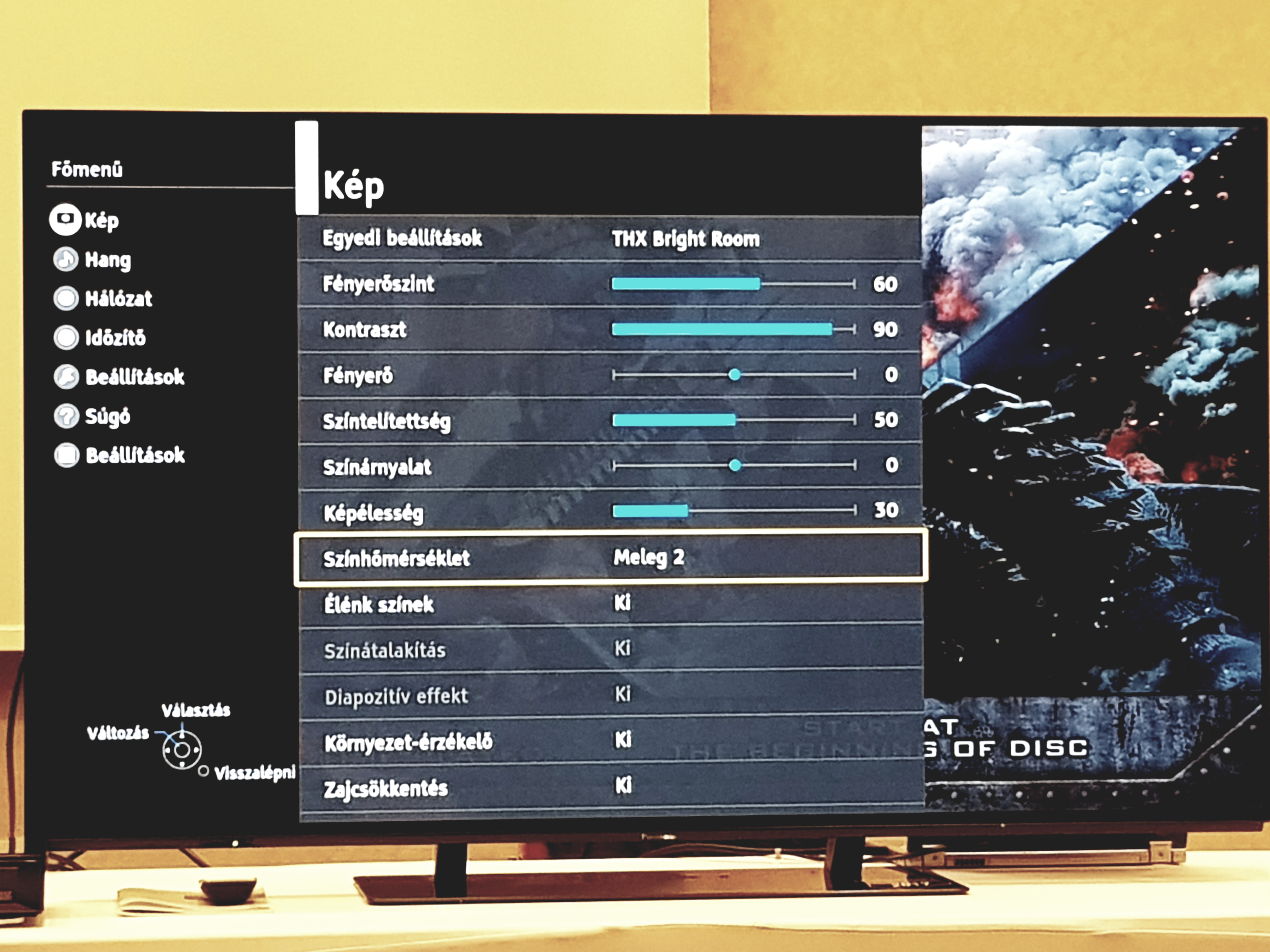 Semmi olyat nem tud, amit szinte bármelyik okoskészülék ne tudna ma már, de nincs is szükség annyi mindenre. Cserébe nagyon szép és könnyen kezelhető a felület, első körben ugorjunk rá a beállításokra. A színhőmérséklettől kezdve a hangprofilokon át a részletes kontraszt/fényerő/telítettség stb. palettán mindent könnyedén tudunk állítani, de természetesen előre elkészített presetek közül is választhatunk, talán kezdésnek ez lehet a legcélszerűbb. Mindezek mellett a HDR támogatás is brutálisan megszaladt, szinte minden féle-fajta ilyen formátumot támogat az UHD Blu-ray-től kezdve a BBC féle Hybrid Log Gamma-ig. Egyik legmenőbb, egyben legvitathatóbb funkciója a mozgáskiegyenlítés, ami a gyorsabb kameramozgásoknál segít megakadályozni azt, hogy kikockásodjon a kép. Ez azért is képez komoly vitaalapot, mert megváltoztatja a mozgás dinamikáját, kicsit olyan lesz, mintha egy számítógépes játékkal játszanánk, így nem túl valósághű. Azért sem érdemes erről negatívan beszélni, hiszen a funkcióját tökéletesen ellátja, ettől függetlenül az én szubjektív véleményem az marad, hogy nem kapcsolnám be soha sem, ha olyan filmről van szó, ami nem animációs, vagy épp nem konzolos játékról van szó. A SmartScreen egyébként összegyűjti nekünk a leghasznosabb funkciókat, amiket pofon egyszerűen kiválaszthatunk, illetve egy egészen ízléses böngészőt is kapunk, amit nem nehéz használni, ha van billentyűzetünk, vagy telefonról kezeljük (távirányítóval bepötyögni a karaktereket teljesen esélytelen).