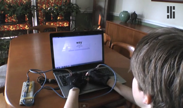 A házilag elkészített kesztyű rezgéssel jelzi melyik ujjunkat kell használnunk a következő karakter bevitelére. Az apa egy külön programot is írt az eszközhöz, mellyel a szavakat egyesével többször egymás után gyakorolva fejleszthető tudásunk, melyben a 100 leggyakoribb angol szó jelenik meg véletlenszerűen. A fiú hozzátette, hogy véleménye szerint rendkívül hasznos a készülék, de sajnos nem tervezik a termék gyártását és értékesítését.