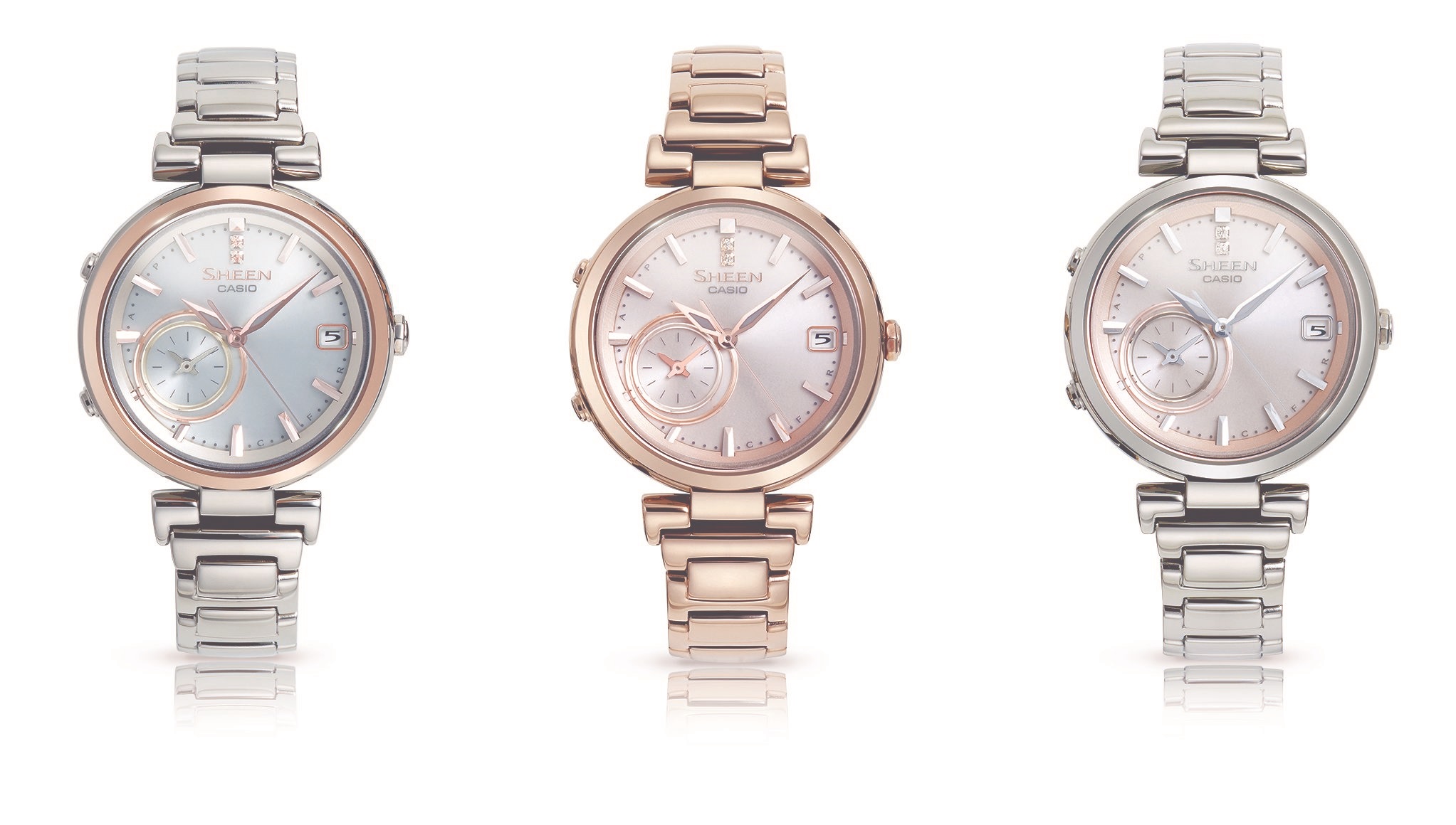 Az öt-hat éve népszerű rose gold (rózsaarany), azaz rozé színű női karórák eleinte a 20-30 éves korosztályban voltak népszerűek, de a felső korhatár kitolódott egészen az 50 éves hölgyekig. Így az üzletasszonyok is előszeretettel hordanak ilyen órákat és egyéb divatcikkek, táskák, cipők, övek, csatok és természetesen az ékszerek világában is meghatározóvá vált ez a szín. A Casio SHEEN karórák közül az SHB-100 modell már egy olyan rozé óra, amely okosóra funkciókkal is rendelkezik. Az üzleti körökben népszerű óramárka modellje így rendkívül pontos, mivel Bluetoothon keresztül csatlakozik az okostelefonhoz és azzal szinkronizálja az időbeállításait. Ha valaki összepakoláskor elkeverte a mobilját a szobában, akkor elég megnyomni egy gombot és az okostelefon még lenémított állapotban is ad egy hangjelzést, így megspórolhatók vele a telefonkeresés hosszú percei.