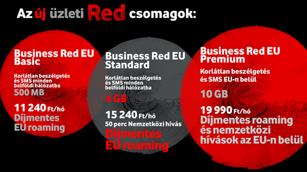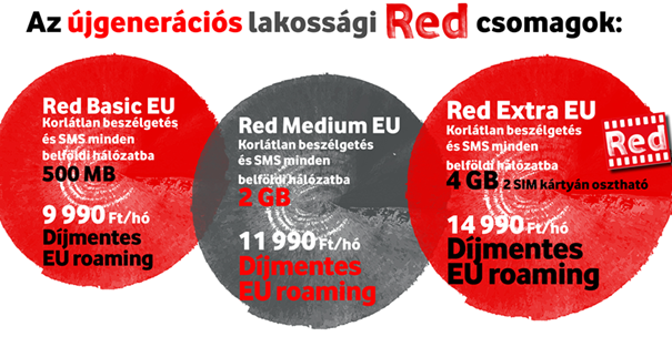 A Red EU Roaming szolgáltatással a Vodafone változatlanul 9990 Ft-os havidíjtól nyújt korlátlan belföldi beszélgetést és üzenetküldési lehetőséget előfizetői számára, és korlátlan hazatelefonálási lehetőséget az Európai Unióból valamint Izlandról, Liechtensteinből, Norvégiából, Svájcból és Törökországból.